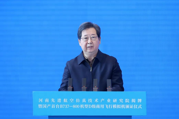 樓陽生代表省委和省政府對研究院揭牌和商用飛行模擬機取證表示祝賀。他指出,航空模擬仿真是飛機研發制造、飛行員培養過程中必不可少的跨界高端技術和關鍵環節,也是虛擬現實、增強現實等前沿創新的重要應用領域,潛力巨大、空間廣闊。要聚焦服務國產大飛機戰略,打造一流航空科研平臺,不斷提升河南航空產業發展水平和能級,以航空經濟高質量發展助力現代化河南建設。